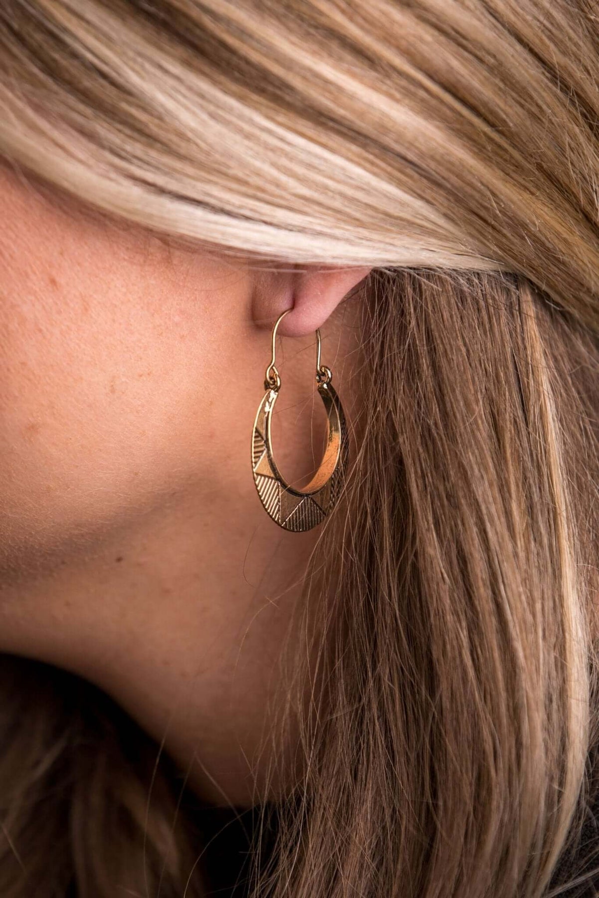 Immerse yourself in the charm of our Burnished Gold Sun Stamped Hoop Earring. Crafted by West & Co., a family business renowned for their trendy and well-loved fashion jewelry, this 1.75" hoop is more than just an accessory. It's a reflection of determination, hard work, and the American dream. Each piece is uniquely designed with all age groups in mind, making it a versatile addition to any outfit. Experience the warmth and radiance of the sun with each wear.