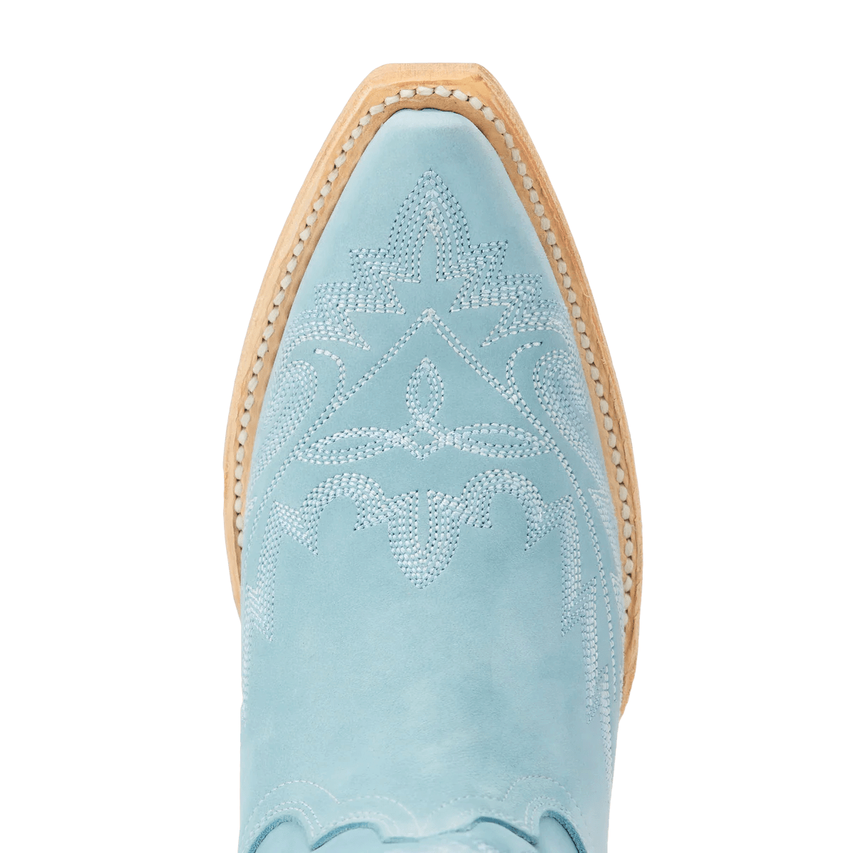 Heirloom quality boots with a core western influence. Meet Lexington in Powder Blue. The classic snip toe profile is embroidered to perfection with a twist on a traditional flame stitch.