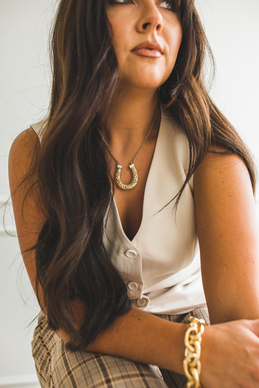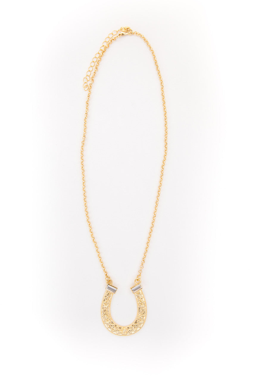 18" 18K Gold Plated Horse Shoe Necklace with Rhinestone Accents