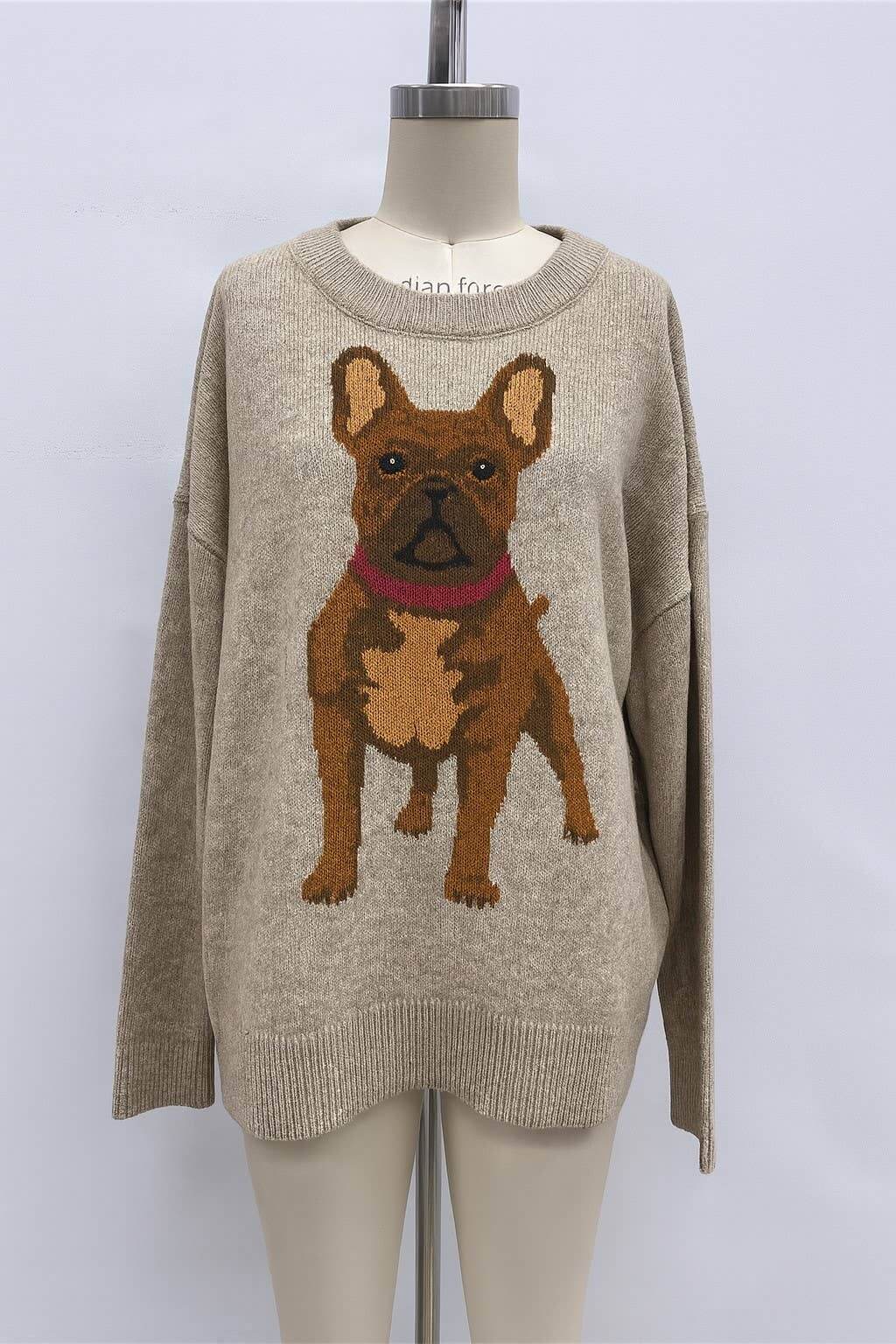Our Cloud Ten French Bulldog Sweater is a trendy addition to your wardrobe. This knit sweater, designed for the young and contemporary woman, features a charming French Bulldog design that is both chic and edgy. With Cloud Ten, you're not just wearing a sweater; you're embracing a trend.