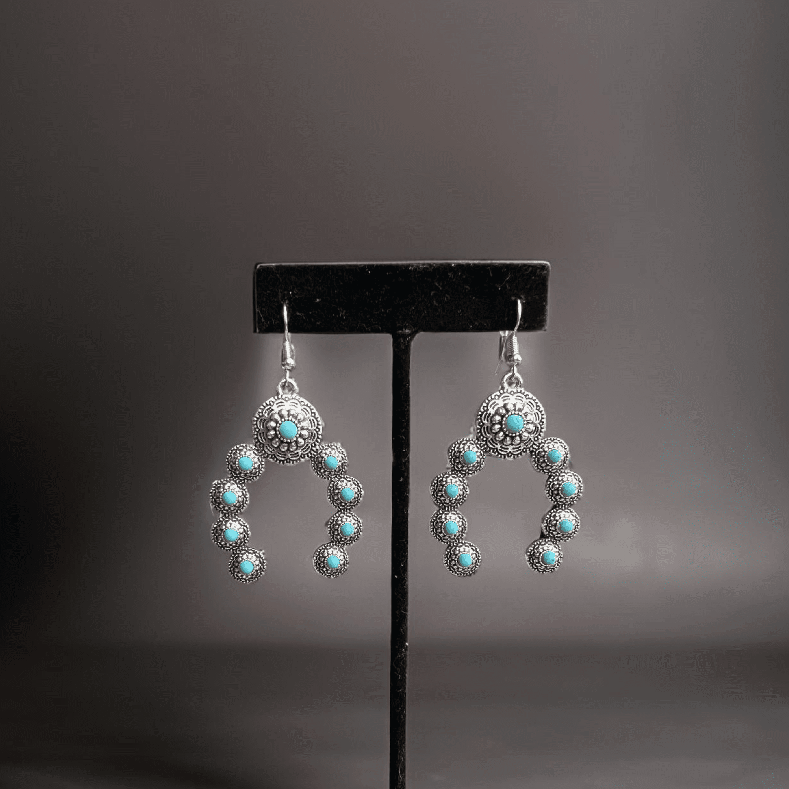 Squash Blossom Naja Western Faux Turquoise Earrings
