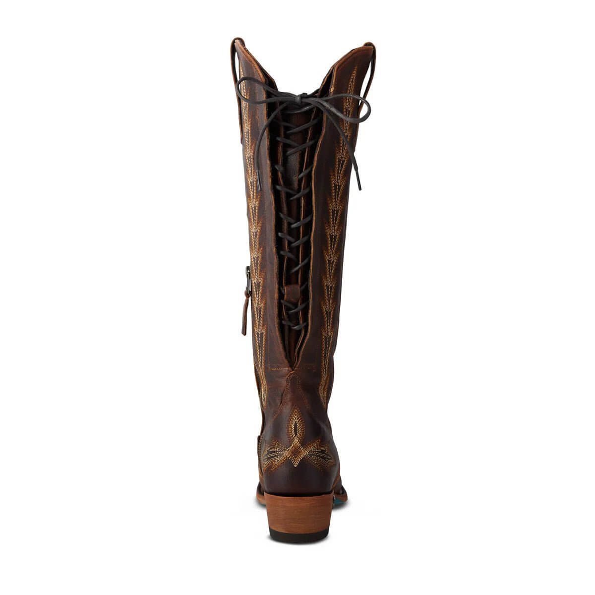 Heirloom quality with a core western influence. The classic snip toe profile is embroidered to perfection with a twist on traditional flame stitch and a functional corset back. The Lexington Knee-High is timeless and sexy all wrapped in one.