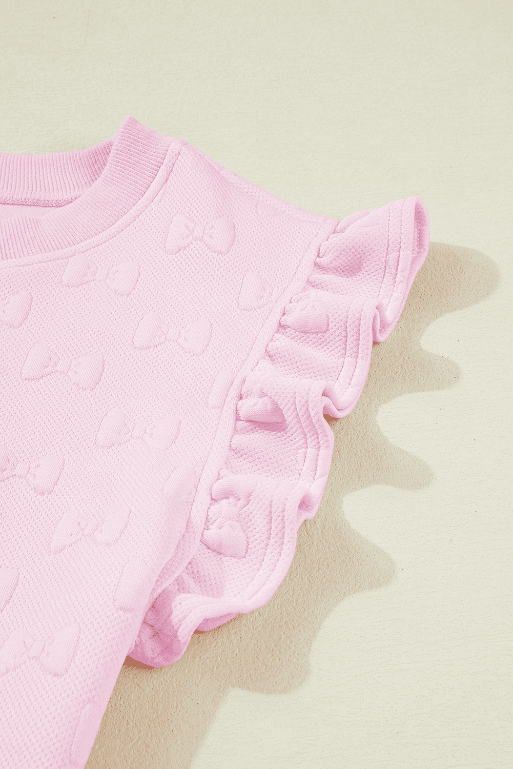 pink two-piece lounge set, women’s western boutique outfit, cowgirl casual clothes, cute summer outfit for women, textured bow set, flutter sleeve lounge top, western boutique clothing, Cowgirl Charm fashion, comfy girly outfit, pastel cowgirl style