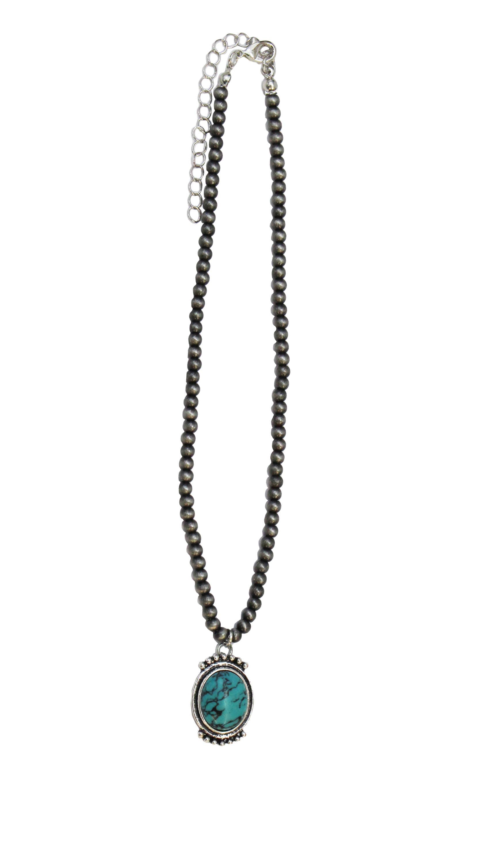 14" Faux Navajo Pearl Necklace w/ Turquoise Concho Charm