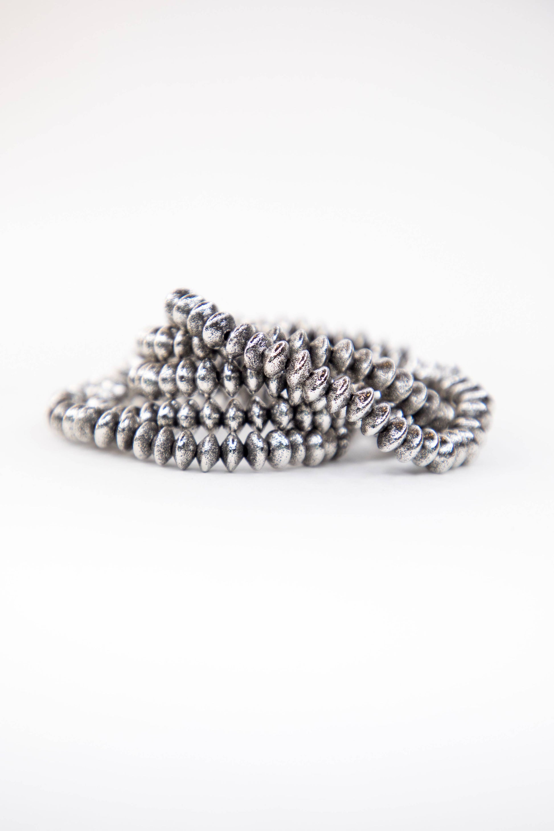 18K White Gold or Yellow Gold Plated Burnished 5 Disc Bead Stretch Bracelet Set