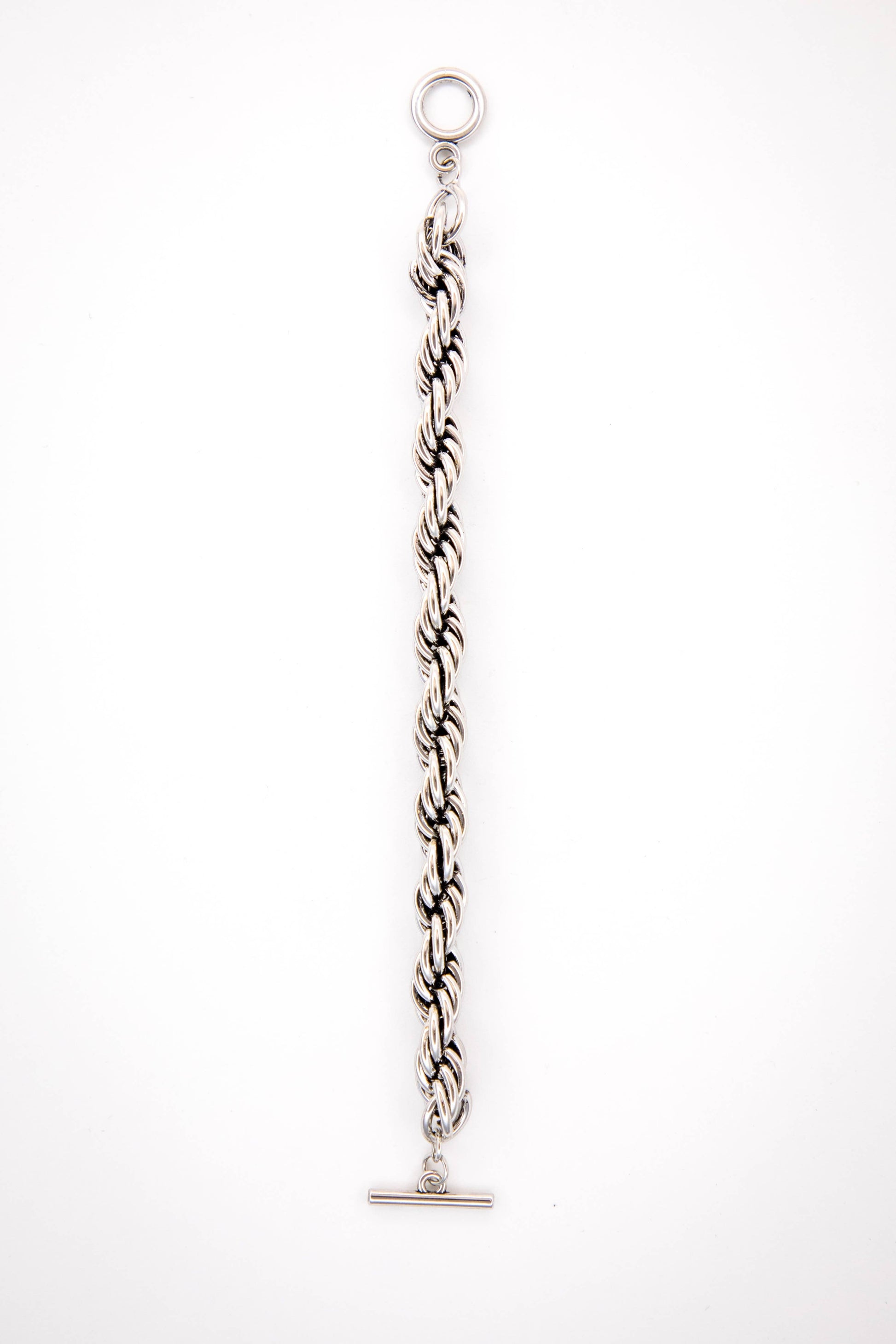 18K White Gold or Yellow Gold Plated Burnished Thick Rope Bracelet with Toggle Closure