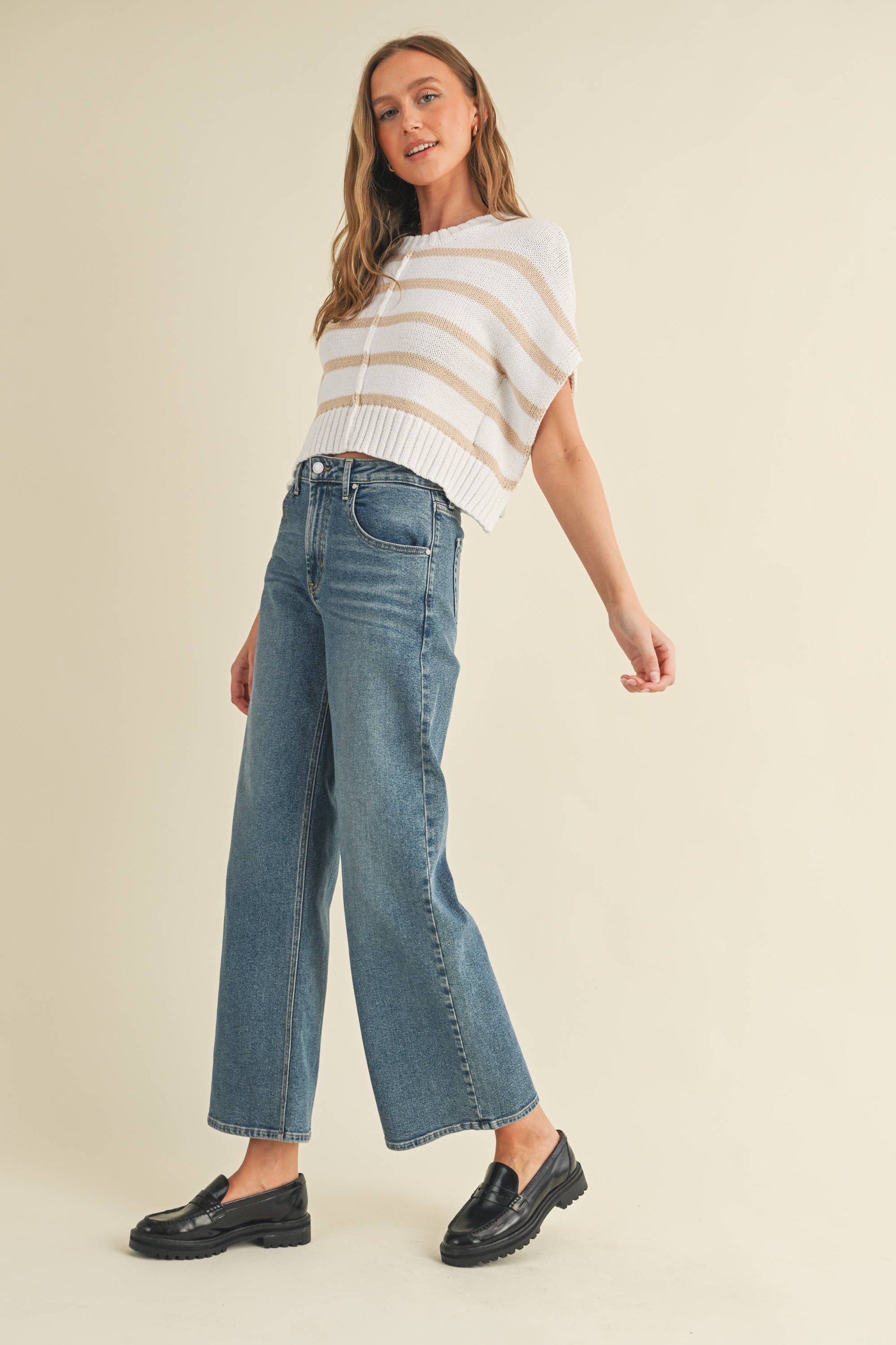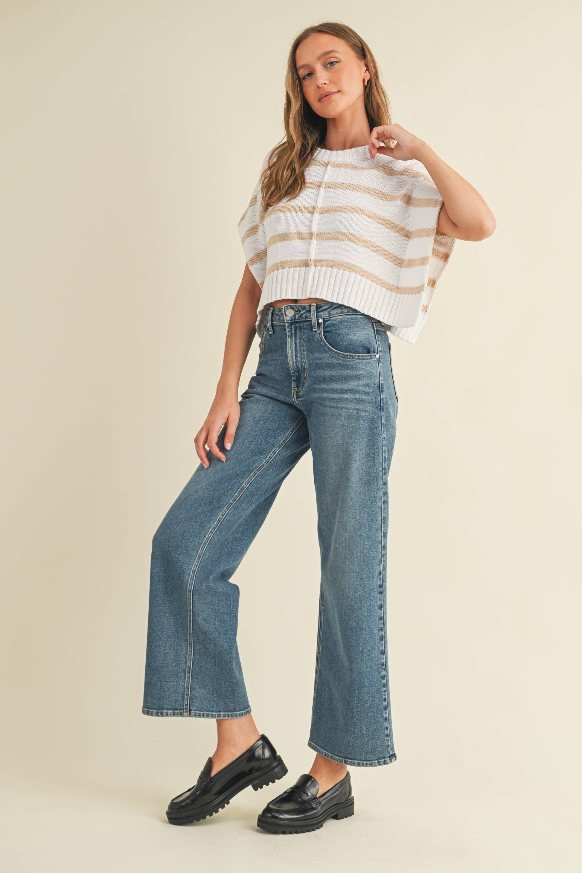 CSW13591 - STRIPED KNIT CROPPED SWEATER VEST