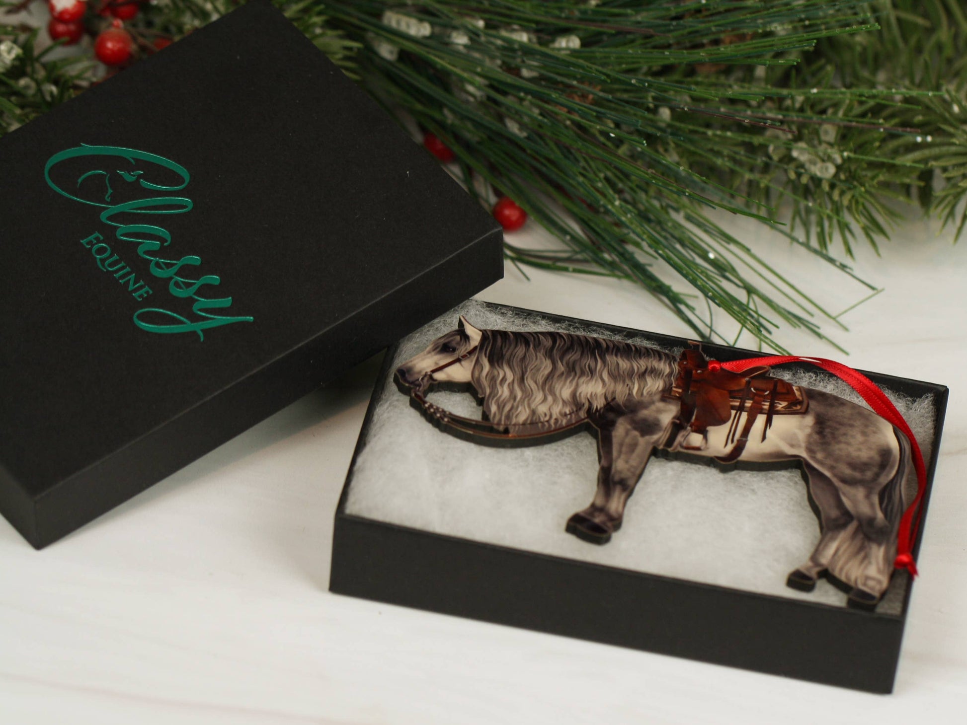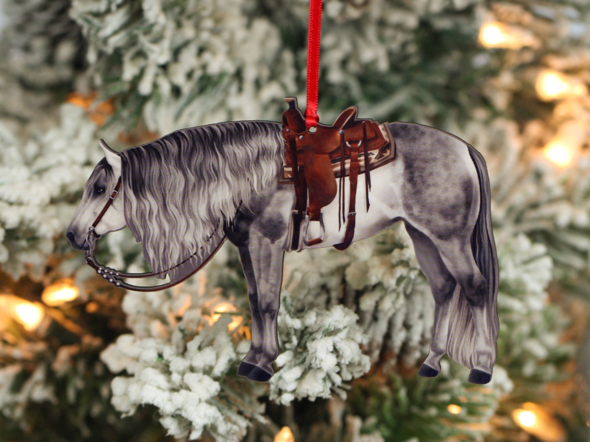 Gray Western Ranch Horse Ornament - Quarter Horse Christmas
