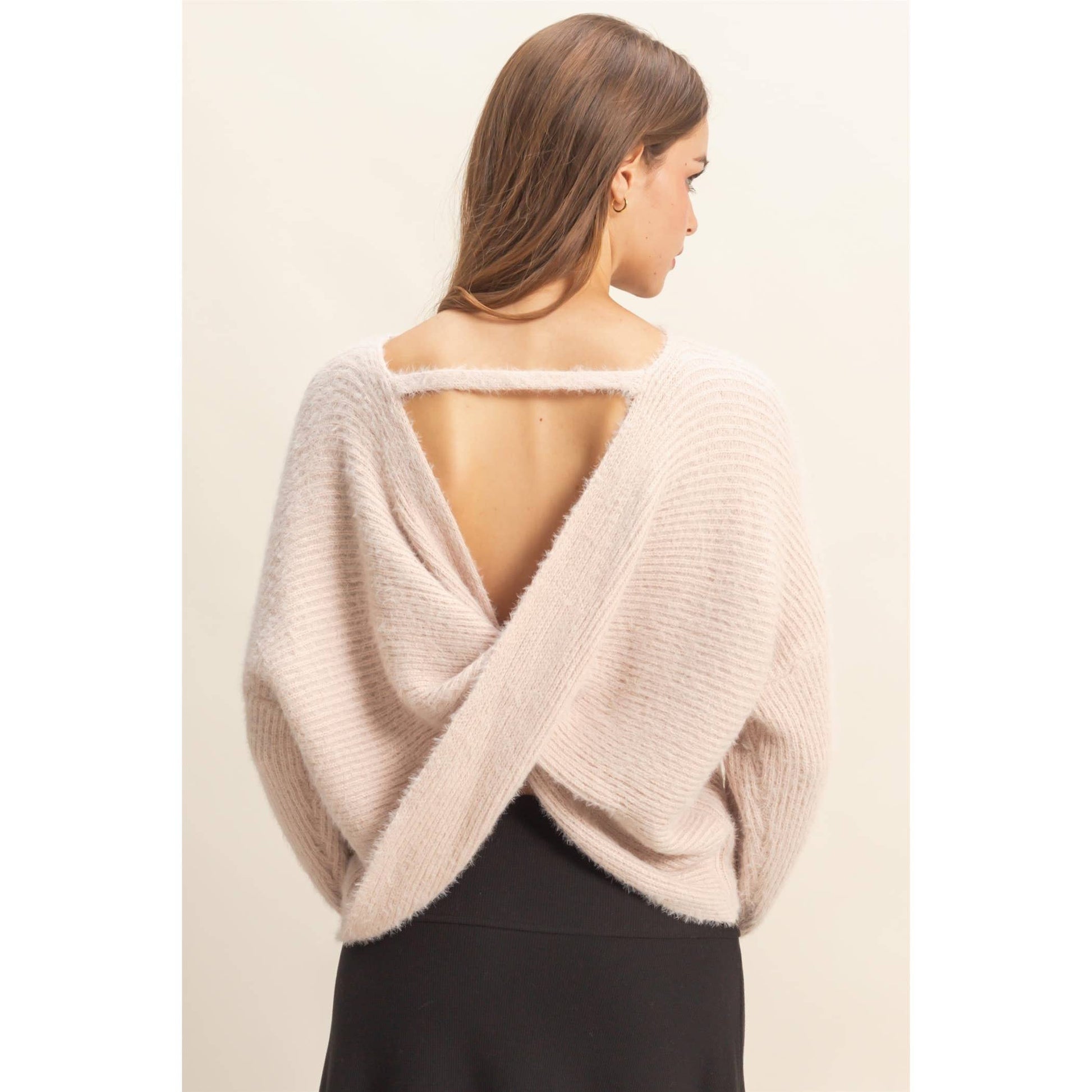 Embrace simplicity with this oversized sweater. Featuring a relaxed fit and a broad neckline, it's perfect for versatile styling. Pair with fitted pants and a statement belt for an effortless, fashionable look. Ideal for casual outings or cozy evenings. 63% Nylon 37% Polyester Wear With Black, Off White, Violet Ice: Hf25f145 Sage Green: Hf26a568 Taupe: Hf25a696 Model Is 5' 8" Tall, 32" Chest, 23" Waist, 34" Hips And Wearing A Size Small Imported. Designed In The USA