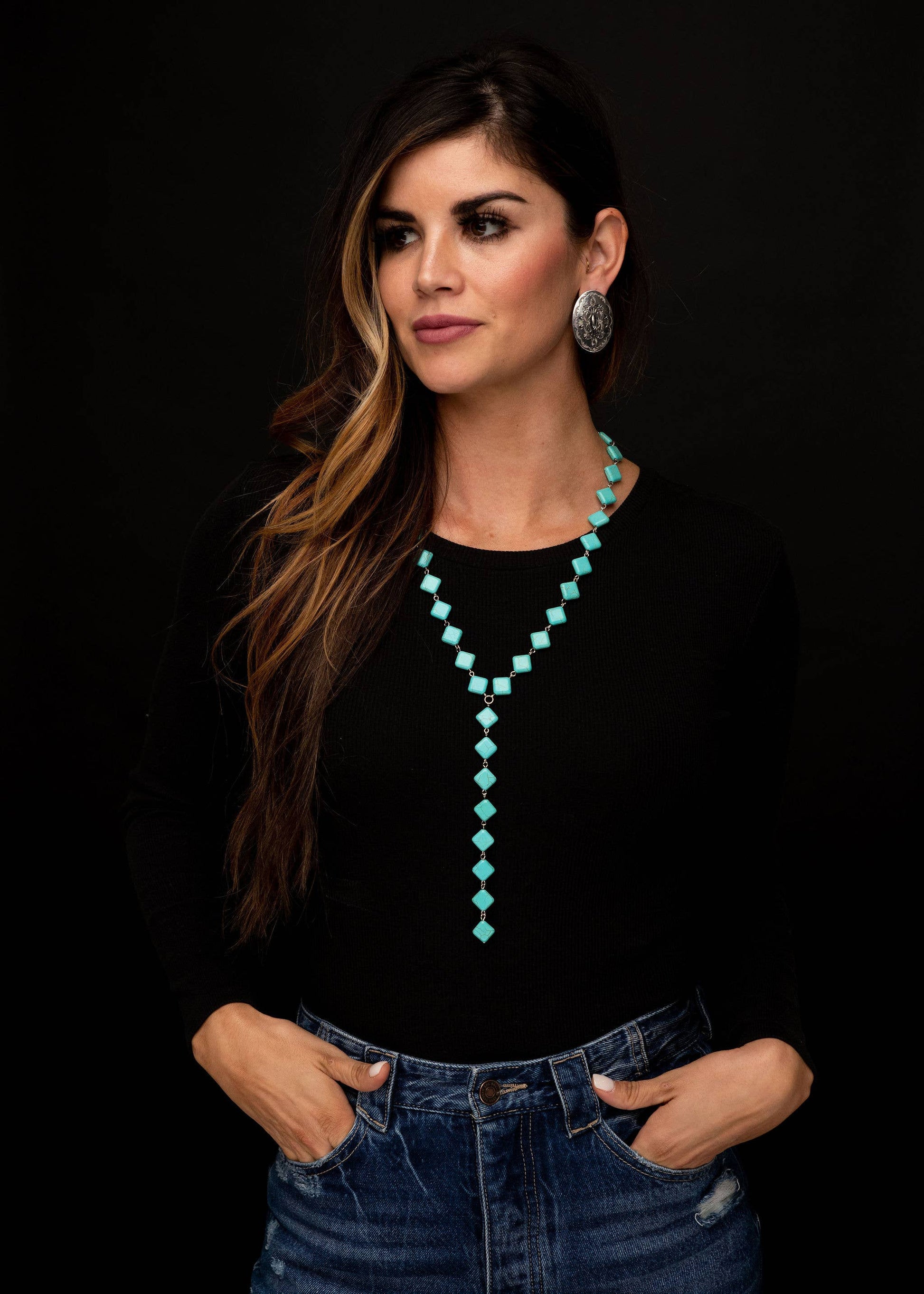 Turq Diamond V Necklace with 6.5" Hanging Strand
